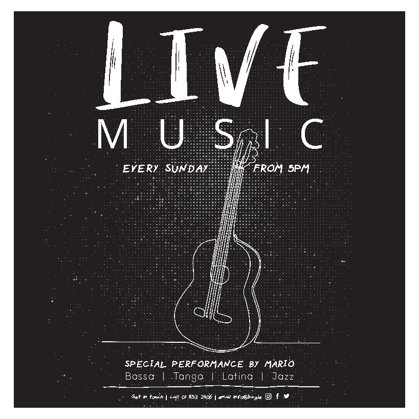 Come relax and unwind with the live music at Bay restaurant every Sunday from 5pm. Mario is playing Bossa, Tango, Latina and Jazz... so come and join us every Sunday for a relaxing afternoon of music and good food, you won't be dissapointed!